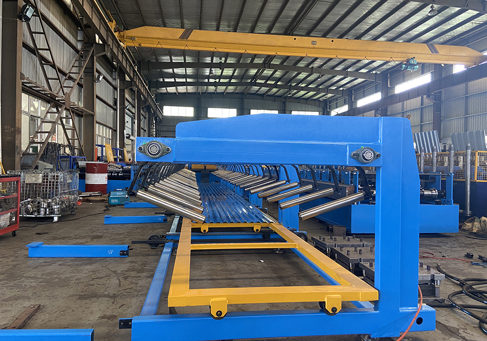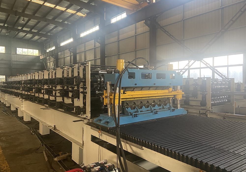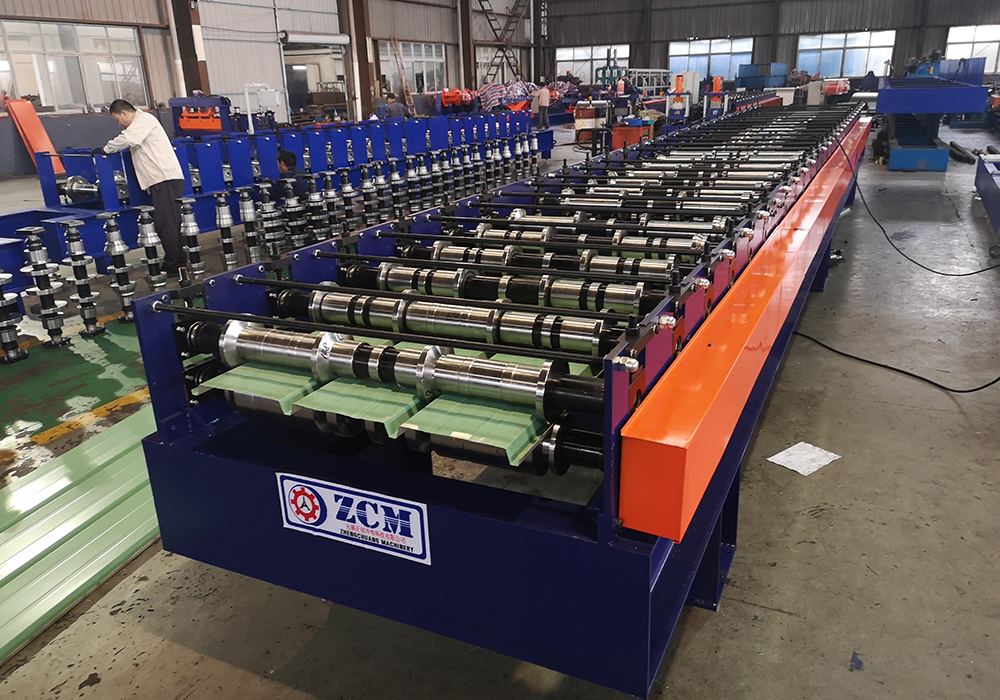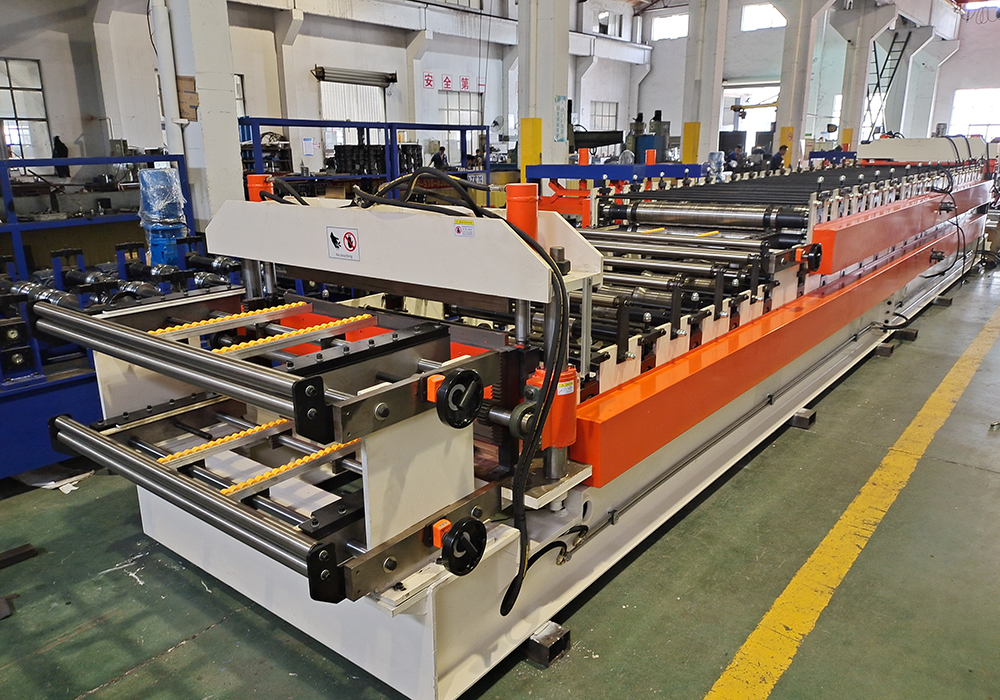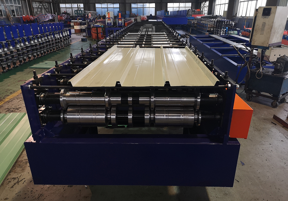 Roofing system roll forming machine is used in an extensive range of metal sheet profiles. It includes trapezoidal panel, corrugated panel, roof tile panel, step tile, glazed tiles, metal deck panel, standing seam panel, K span panel and ridge cap. Its products are widely used in roof and wall system in workshop construction and housing construction.