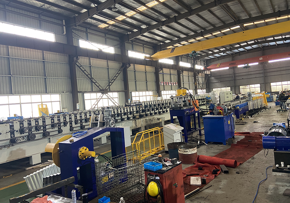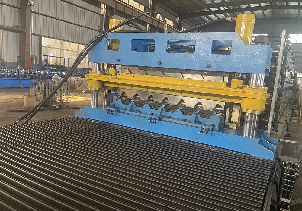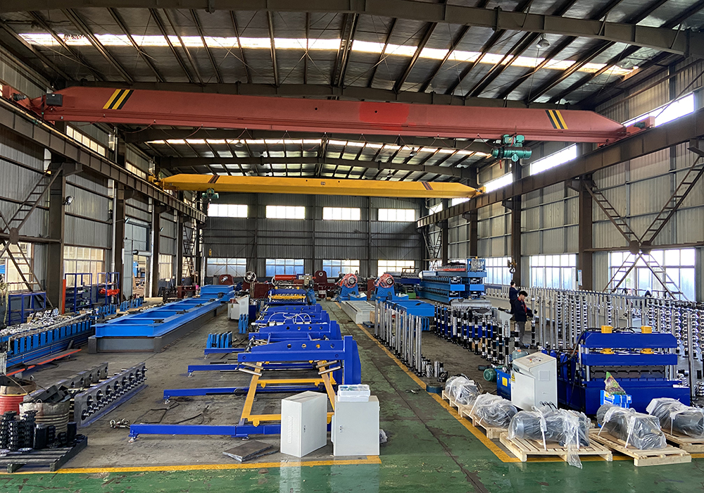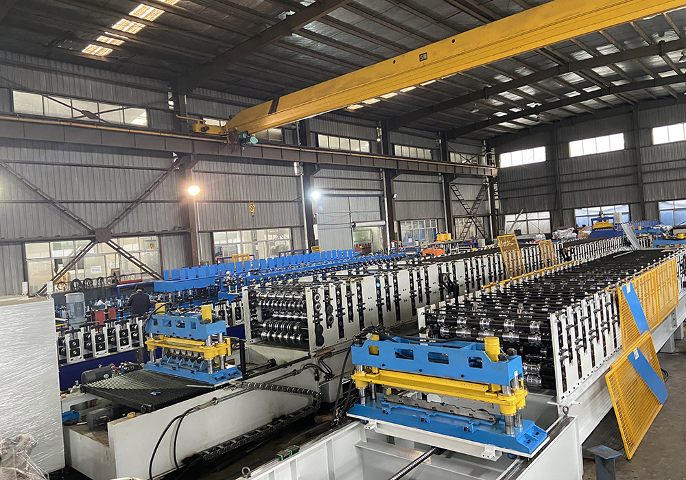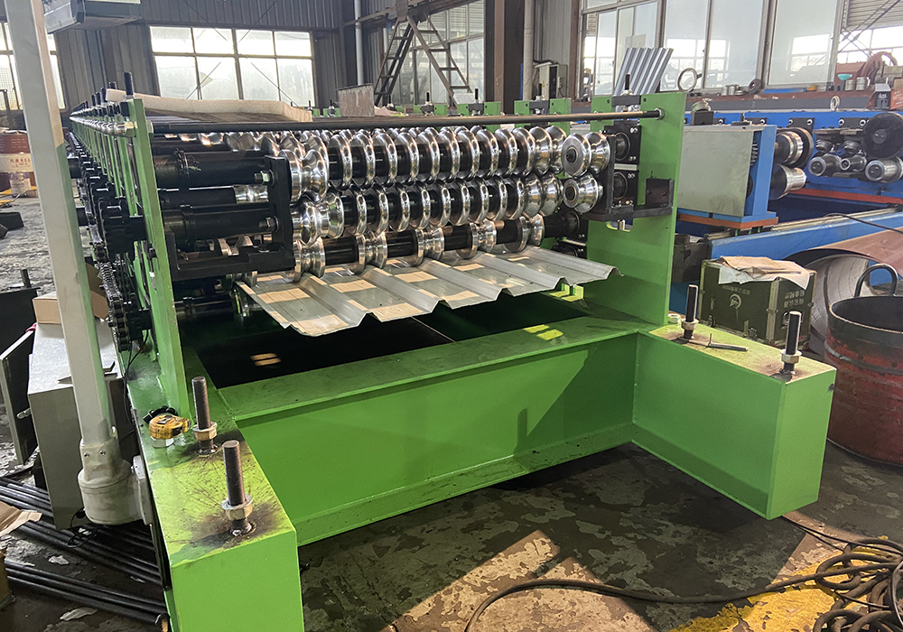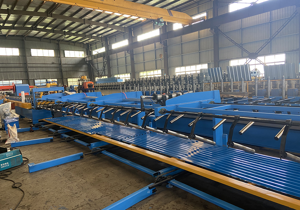 Roofing system roll forming machine is used in an extensive range of metal sheet profiles. It includes trapezoidal panel, corrugated panel, roof tile panel, step tile, glazed tiles, metal deck panel, standing seam panel, K span panel and ridge cap. Its products are widely used in roof and wall system in workshop construction and housing construction.