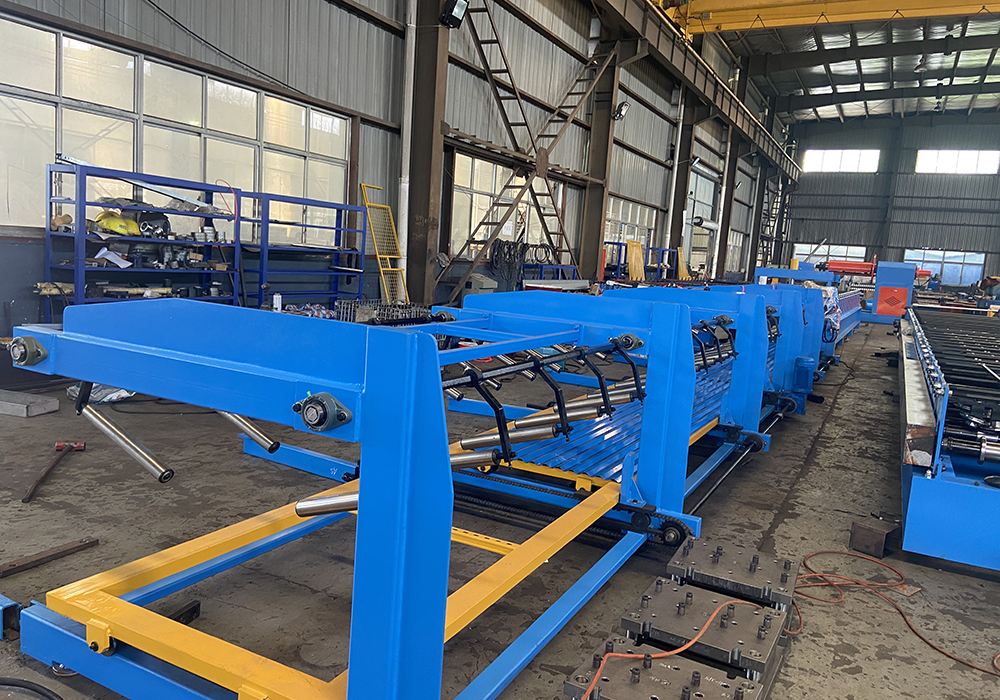 Double layer roll forming machine is including 5T manual decoiler, drive system, roll forming machine, cutting device, hydraulic system, electric system, and output table, etc.