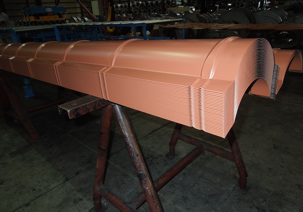Ridge Cap roll forming machine can make different kind of ridge cap to meet the customer requirement. The ridge cap is applied to roofing sheet area. The normal raw material is 0.3-0.8mm thickness. Normal working speed is 10-25m/min.There are many different shapes of ridge cap, we can make all kinds of machine if you can offer the profile to us.